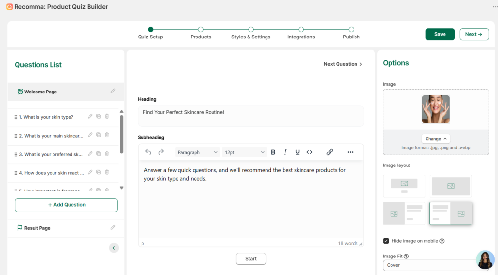 These are short steps on how to create a simple quiz using the recommendation quiz builder. In this article, you will find detailed information about each part of the Quiz Setup section.