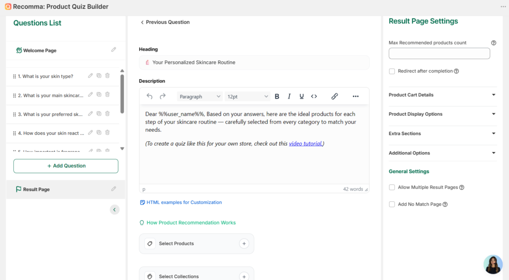 The results page is where users will see the outcome of their quiz, including personalized product recommendations. You can customize this page to improve user experience and encourage purchases.