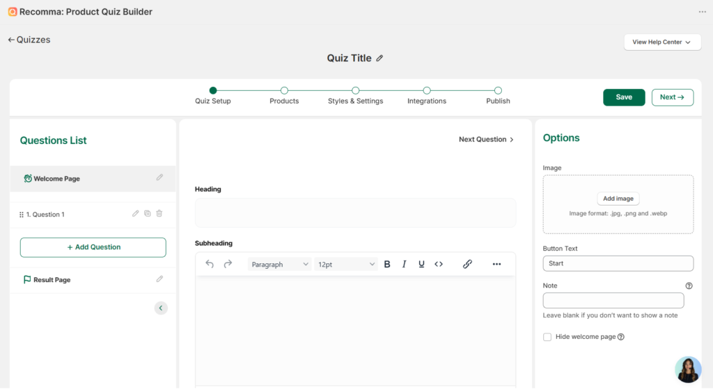 Welcome to Your Quiz-Building Journey! This guide will provide clear, step-by-step instructions for creating your first quiz on Shopify via Recomma Quiz Builder.
