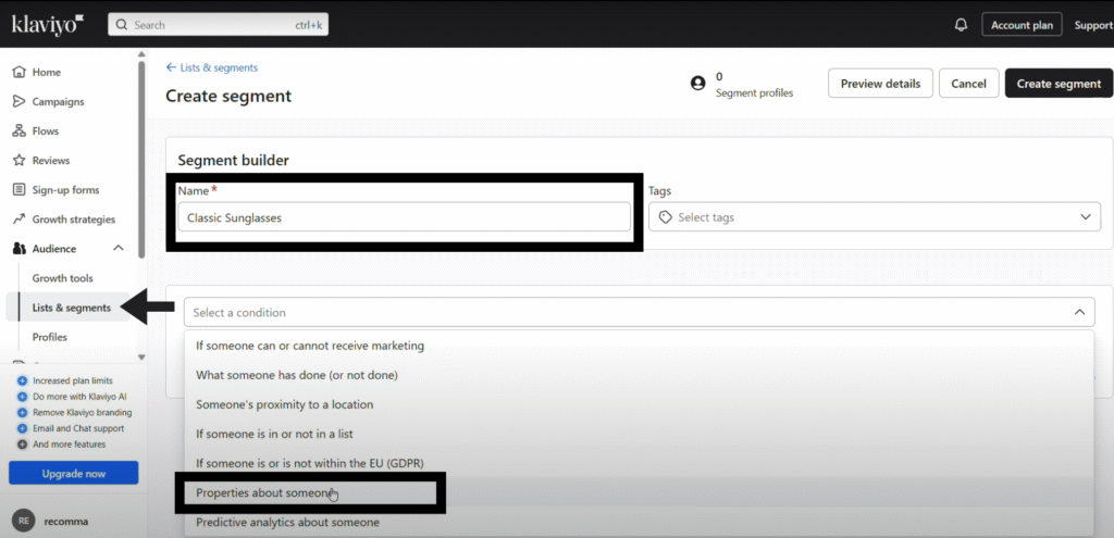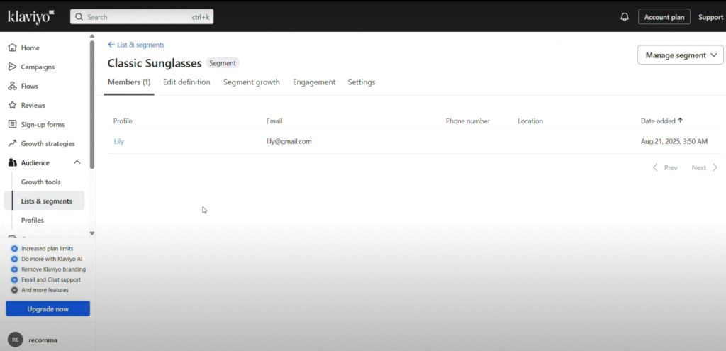 Before creating segments, make sure you’ve already connected Klaviyo to Recomma. You can read the guide or watch the video on how to do it.
