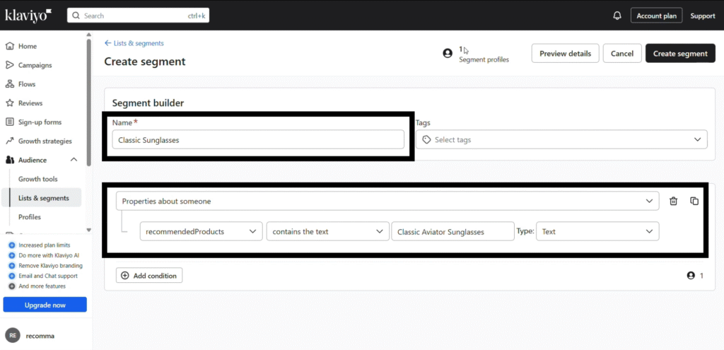 That’s it! You’ve now created personalized Klaviyo segments based on quiz results from Recomma. This allows you to run highly targeted email campaigns that match customer preferences.