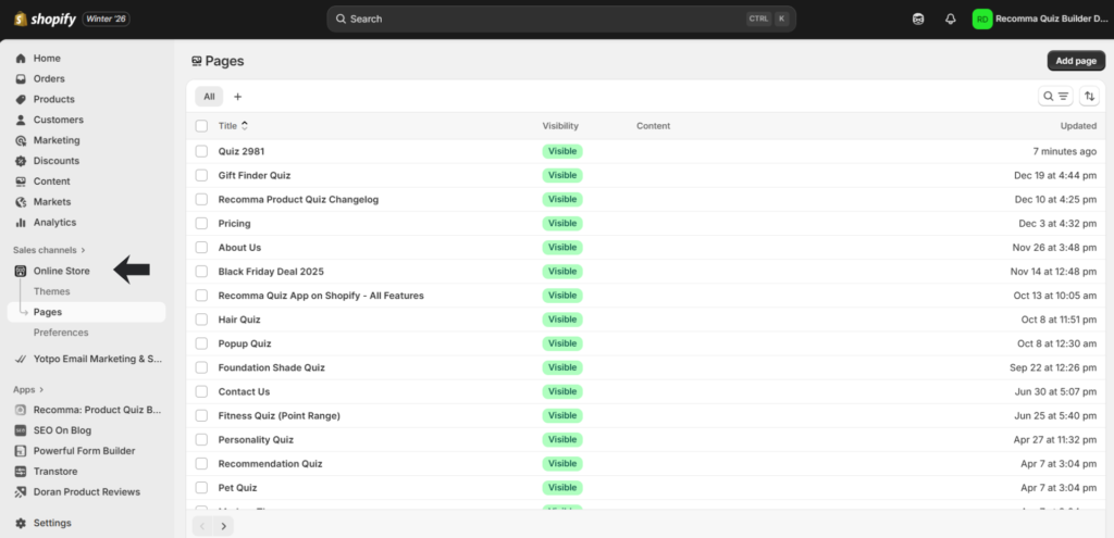 - Then Online Store > Pages