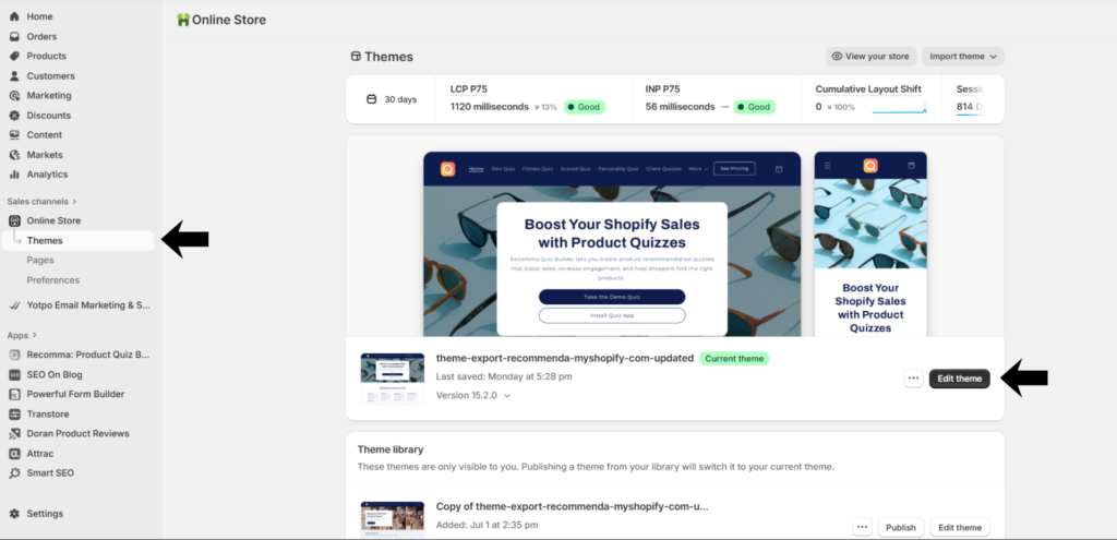 1. Go to the Recomma app in your Store Dashboard and edit the quiz that you want to publish.