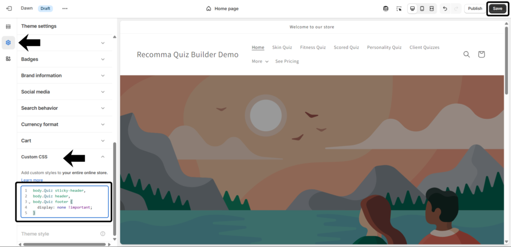 2. Theme Settings > Scroll down to Custom CSS